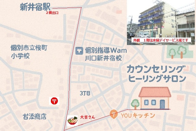 初めて来られる方は新井宿駅までお迎えに伺います。